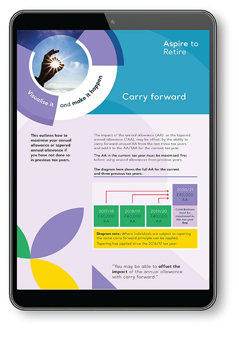 If you haven’t used up all your annual allowance in a tax year, you can carry it forward – enabling you to save more in the following tax year. You can carry forward up to three years’ unused annual allowance in this way.